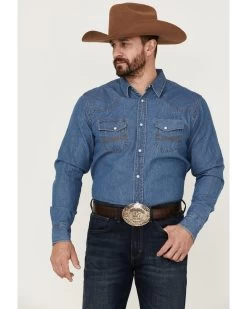 Blue Ranchwear Men’s Long Sleeve Pearl Snap Heavy Western Denim Shirt
