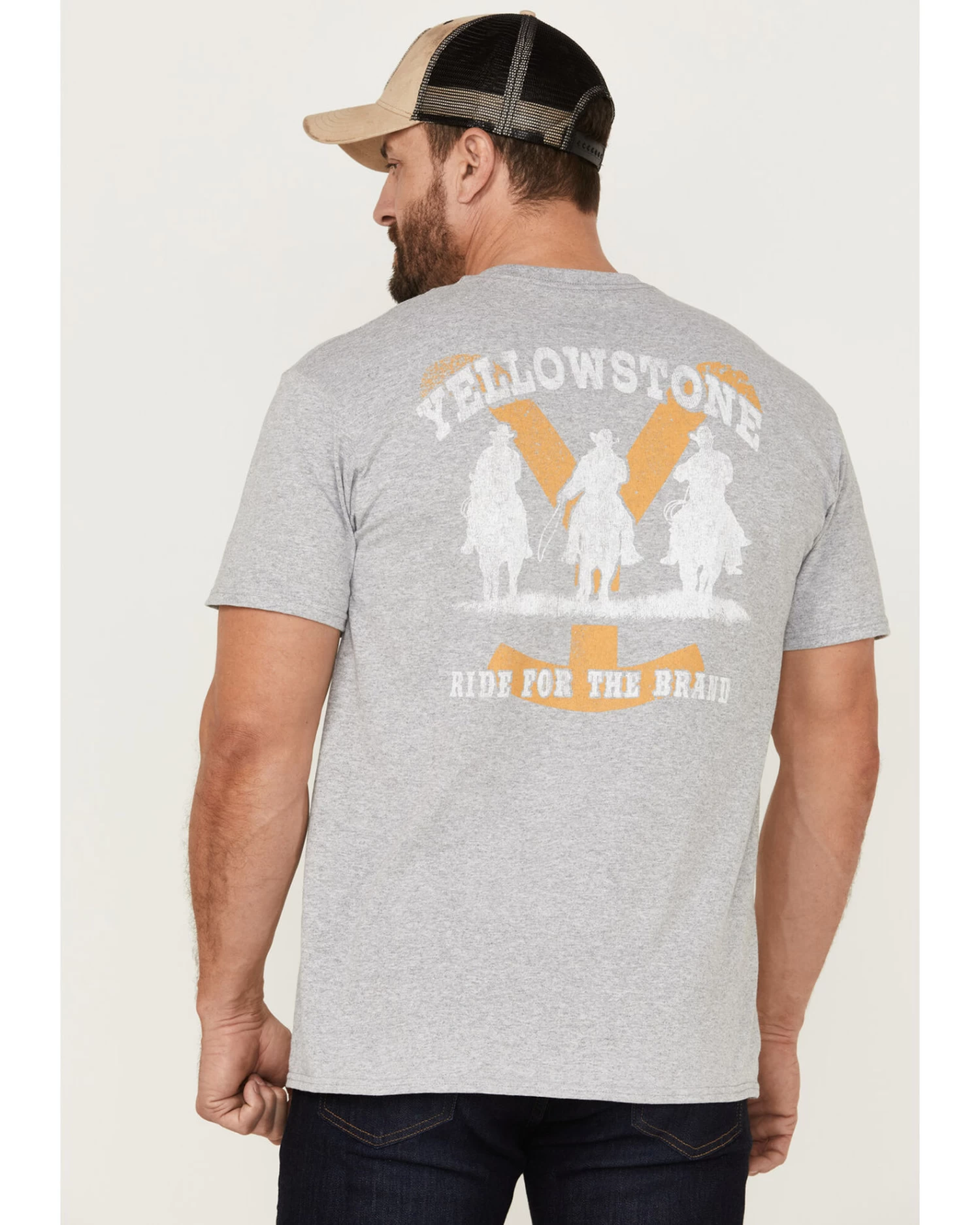 - “Yellowstone Ride For The Brand” with roping cowboys graphic on back
