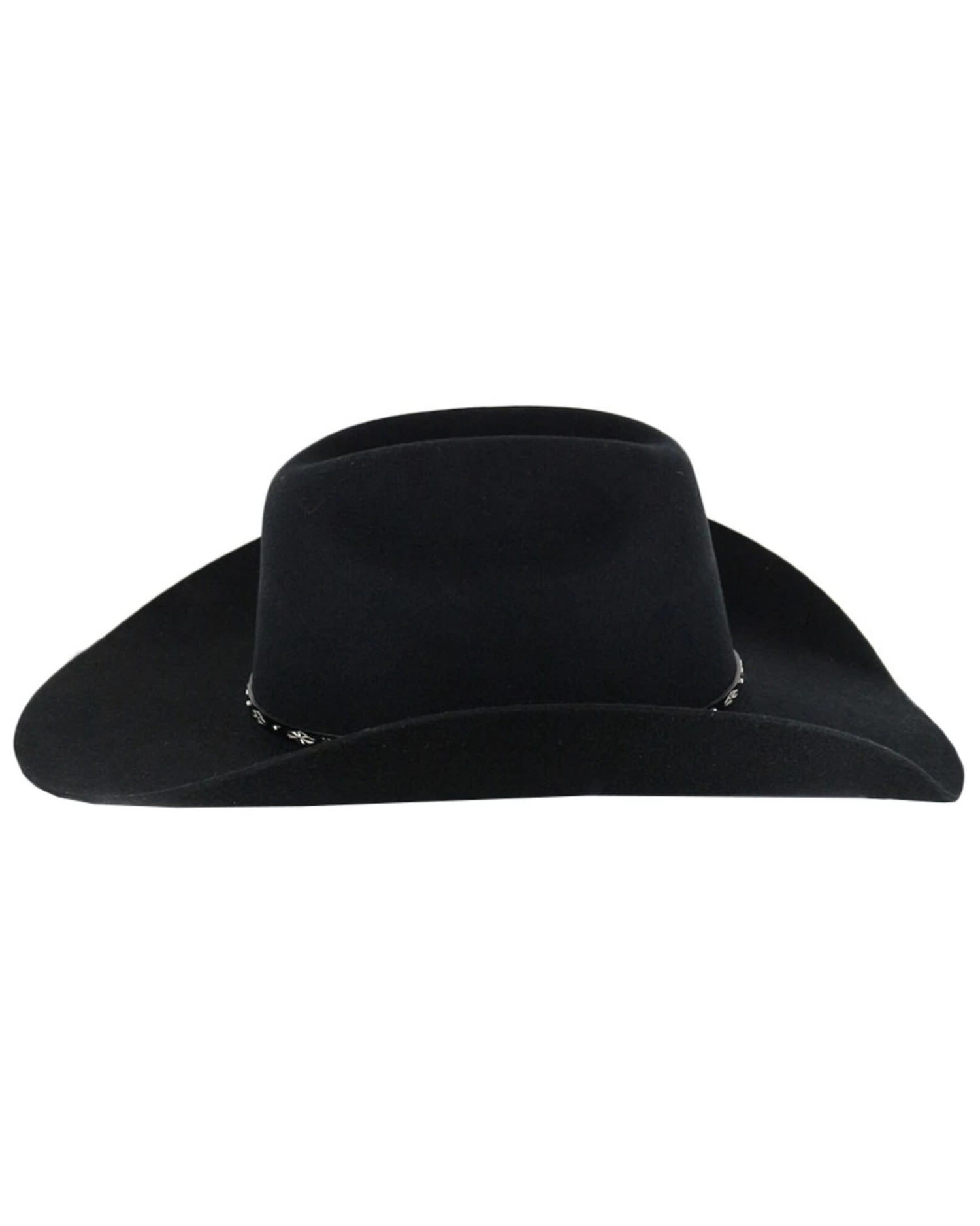 Top off your western style with this Cody James® Drifter 3X Rider Crown Felt Hat. It features a high quality 3X wool blend with a cattleman’s crease and 4 1/4″ shovel brim. The hat band is black leather with silver toned conchos around it. You’ll turn heads everywhere you go in this Cody James® hat.