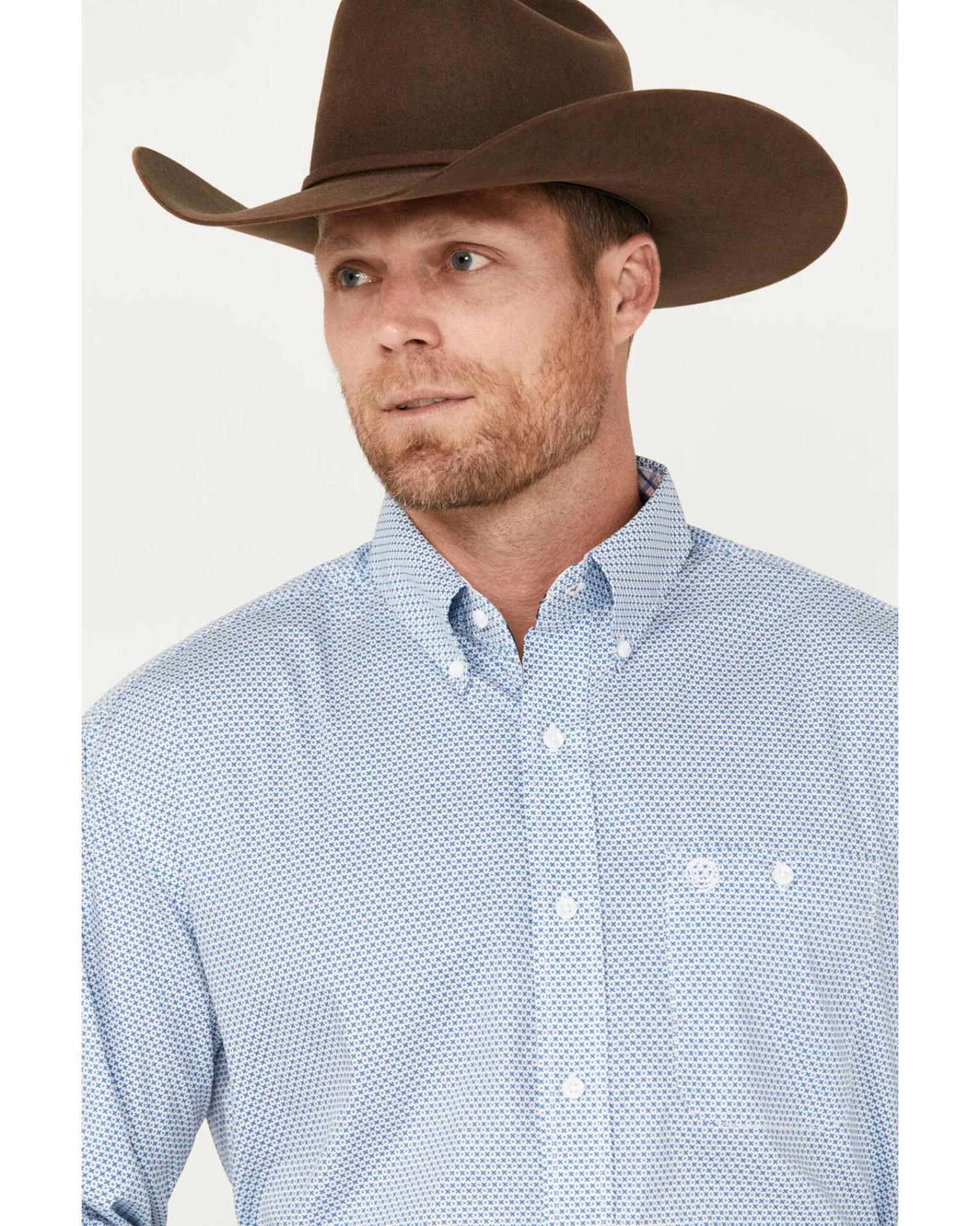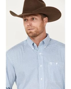 George Strait By Wrangler Men’s Geo Print Long Sleeve Button-Down Western Shirt