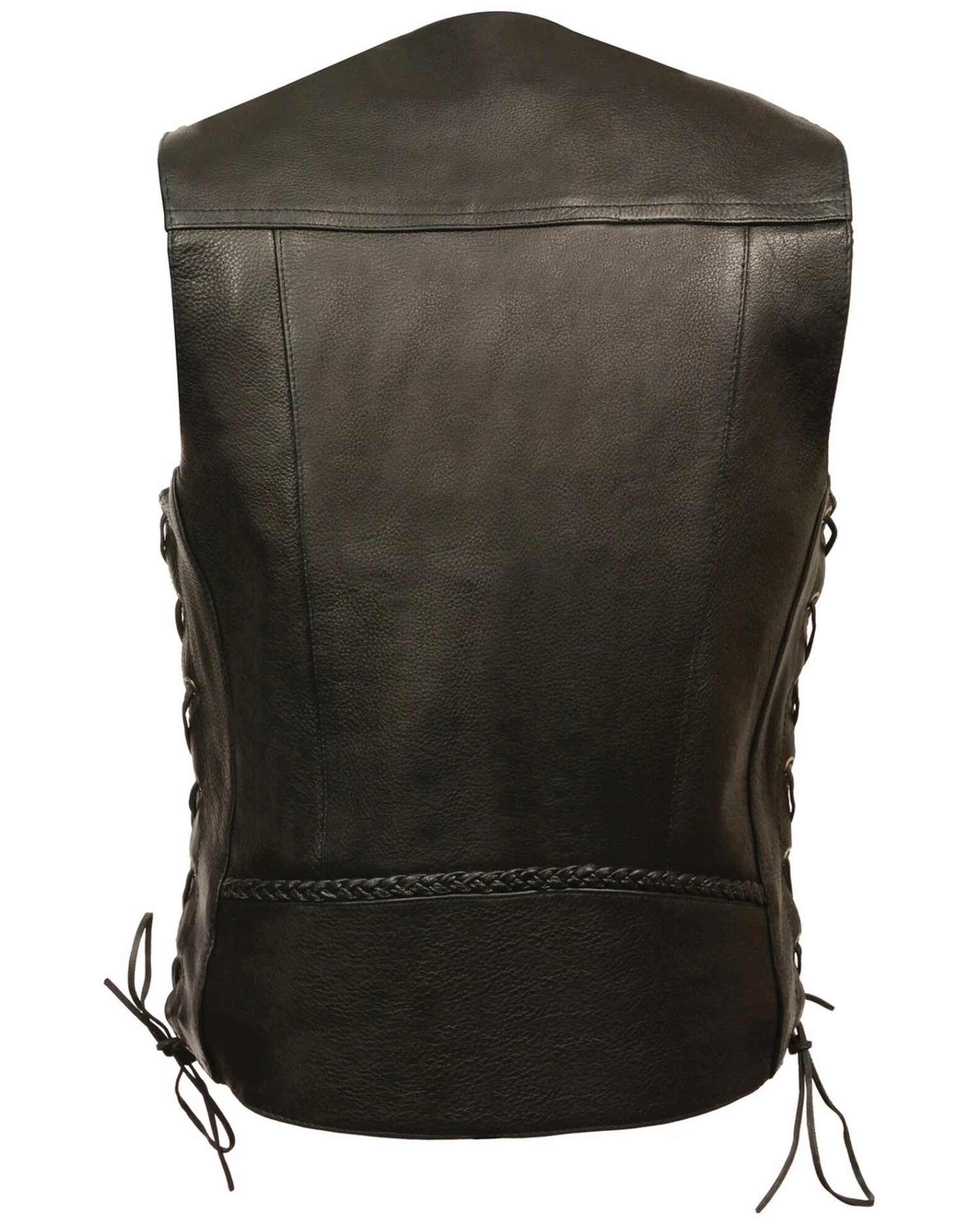 For the comfort, protection and style you need while riding, choose apparel from Milwaukee Leather. This vest features buttery soft naked cowhide leather construction with braided detail, Buffalo Nickel snaps and side lacing for optimal fit. Interior concealed weapon pockets allow you to keep your firearm close at hand. Ride in comfort and style with quality apparel from Milwaukee Leather.
