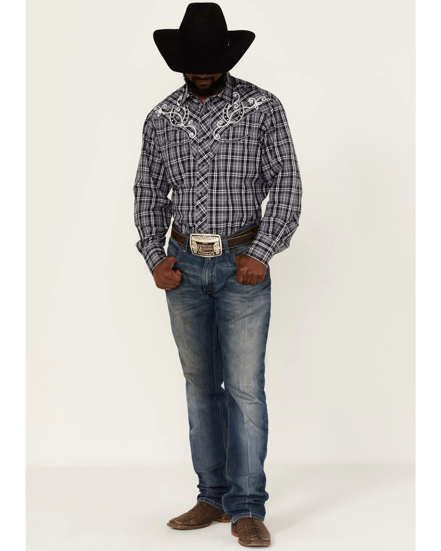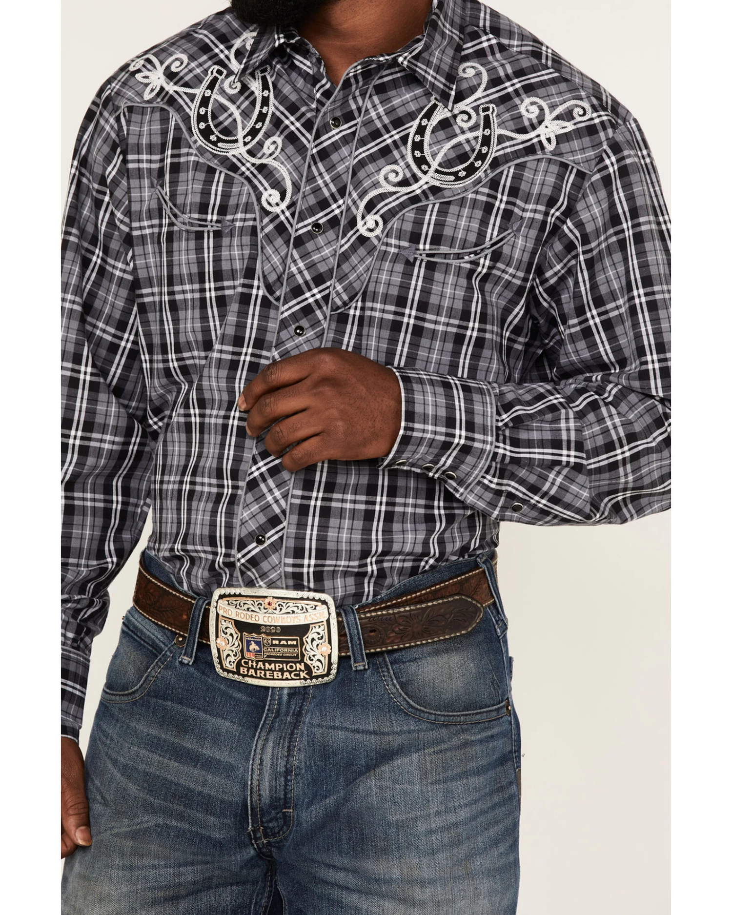 Roper Men’s Embroidered Horseshoe Large Plaid Long Sleeve Snap Western ShirtÂ