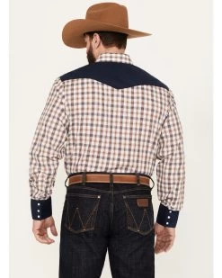 Roper Men’s Retro Contrast Plaid Print Long Sleeve Western Snap Shirt