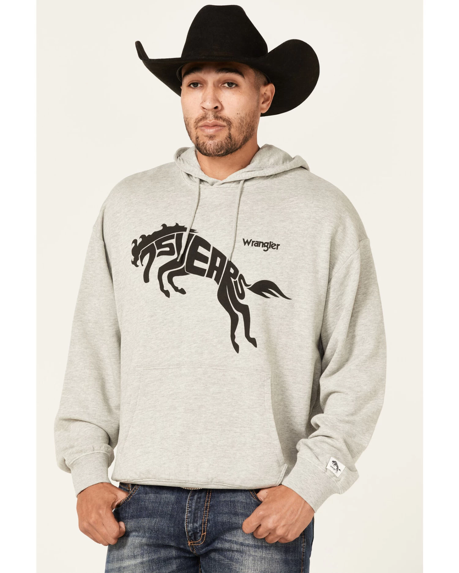 Wrangler Men’s 75 Years Heather Gray Horse Graphic Hooded SweatshirtÂ