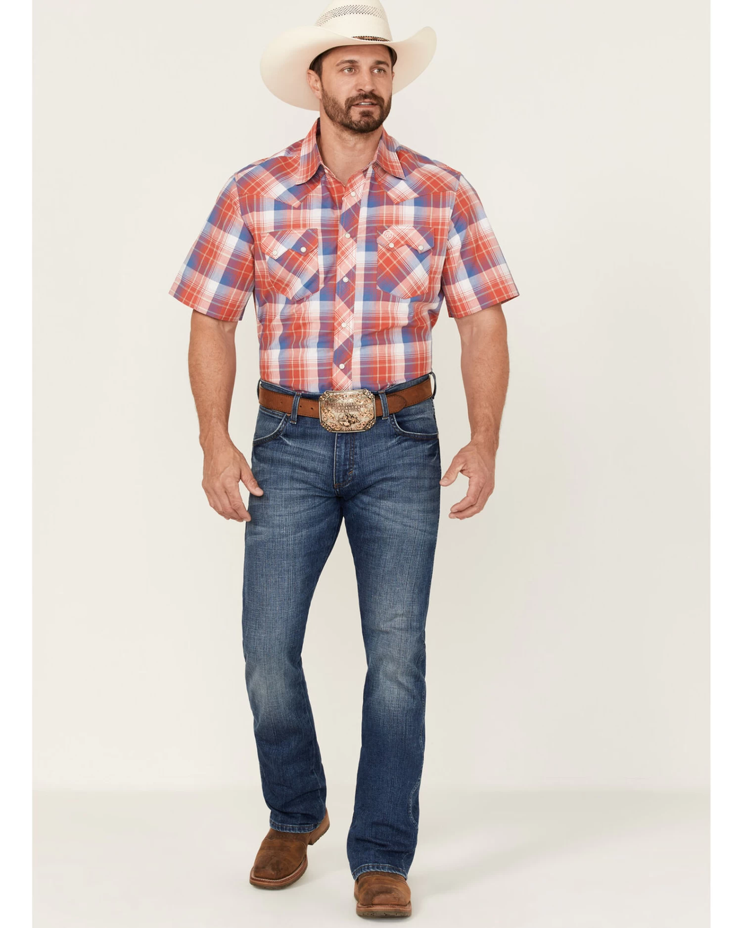 Wrangler Retro Men’s Plaid Print Short Sleeve Snap Western ShirtÂ