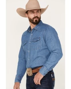Blue Ranchwear Men’s Long Sleeve Pearl Snap Heavy Western Denim Shirt