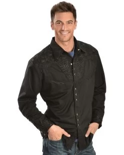 Scully Men’s Black Floral Embroidered Retro Long Sleeve Western Shirt